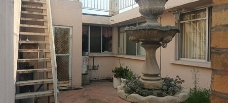 Entrando por la cocina, del lado derecho, encontramos la amplia alacena y en seguida la lavandería, que también tiene acceso al patio, donde hay una gran fuente ornamental. En el patio, también hay escalera hacia el techo de la propiedad, donde están construidas dos bodegas.