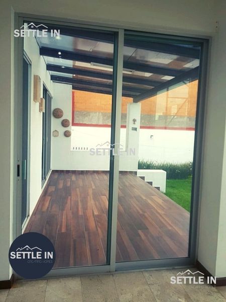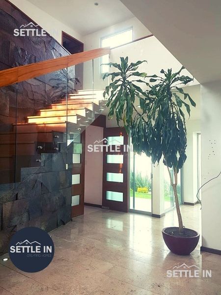 Acabados: Mármoles en pisos de áreas comunes Laminados de Madera en recamaras, Carpintería en madera de encino, Iluminación Led en toda la casa.