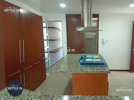 Consta de: Cochera para 2 autos, estudio, sala, comedor, cocina con despensas en área de cocina, área de blancos, medio baño de visitas, 3 recámaras la principal con vestidor y baño completo, recámaras secundarias comparten baño, 4ta recámara en el Roof Garden, cuarto de servicio con baño completo.