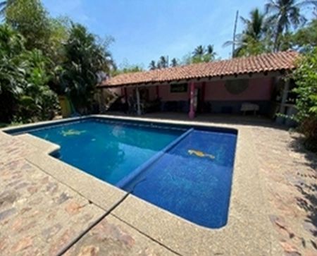 El terreno cuenta con alberca grande, apropiada para fiestas infantiles, pequeño salón de eventos y temazcal.