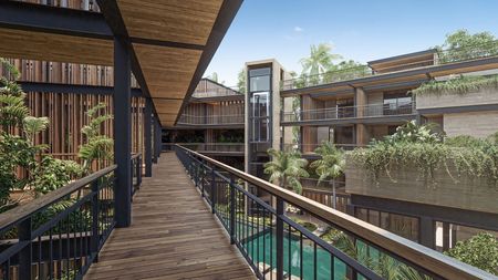 Estas nuevas residencias de lujo ofrecen diferentes distribuciones y opciones para satisfacer sus necesidades, incluyendo estudios y departamentos de 1, 2 y 3 habitaciones, así como penthouses. Cuentan con amplios diseños de planta abierta y espacios interiores-exteriores extraordinarios. Los interiores bien planificados están diseñados para aprovechar al máximo cada rincón y ofrecer comodidad y funcionalidad. Los departamentos en la planta baja tienen terrazas privadas con jardines y los departamentos en los niveles superiores tienen balcones privados. Los penthouses de 2 pisos cuentan con rooftops privados con albercas de inmersión y vistas a la selva, perfectas para relajarse en días calurosos o noches relajadas. Estos departamentos presentan materiales y acabados naturales de alta calidad que son duraderos y fáciles de mantener. Se ofrecen a la venta sin amueblar, pero equipados con ventiladores de techo y aire acondicionado.