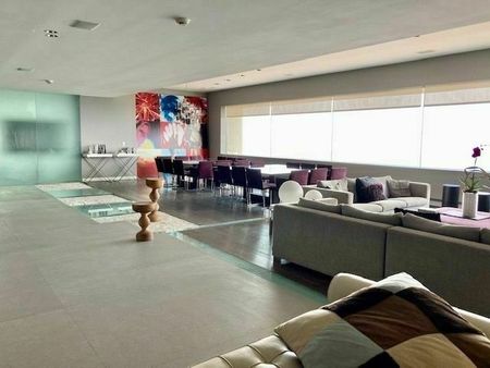 Este departamento ubicado en el más exclusivo de la zona está considerado como único por sus enormes espacios, vanguardistas acabados de gran lujo y modernodiseño, sus vistas súper panorámicas ya que se encuentra en un piso muy alto, y desde luego por su privilegiada ubicación.