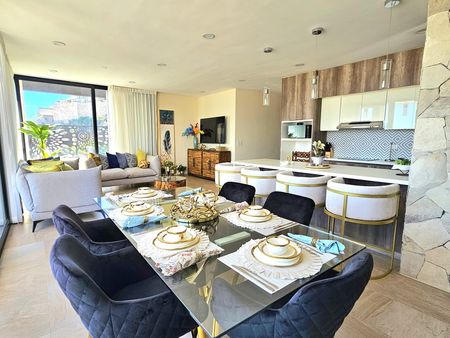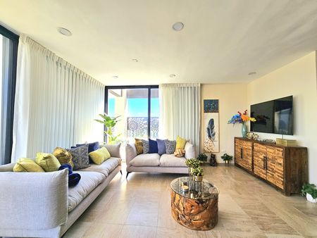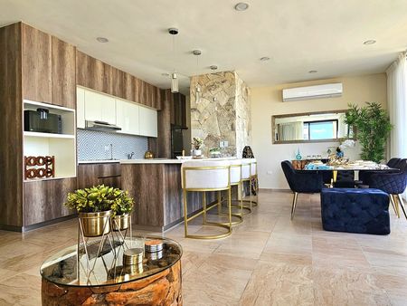 . The penthouse boasts a fully equipped kitchen with modern appliances