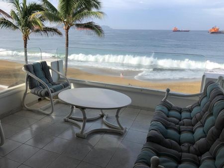 El departamento cuenta con amplia sala comedor, cocina integral, patio de servicio, tres recámaras muy amplias, aire acondicionado, balcón con vista al mar y 3 baños completos. Se encuentra en el cuarto piso, cuenta con terraza para amenidades, (asadores y alberca compartidos). 232 mts2