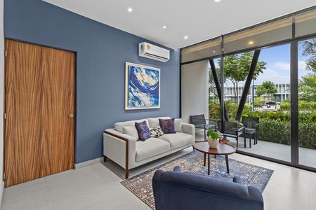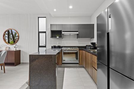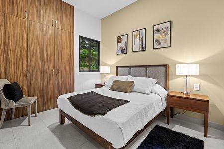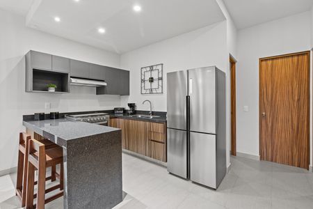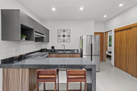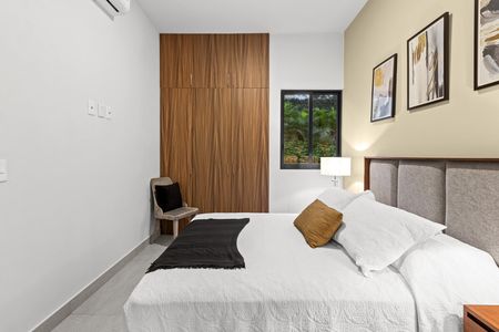 Departamento de 2 recamaras y 2 baños en planta baja. Sus techos altos proporcionan mayor frescura a la unidad además de mucha luz natural. En su amplia area social, la sala, comedor y cocina tienen una vista al jardín bellamente arreglado. La terraza es lo suficientemente amplia como para tener unos muebles de jardín. La cocina proporciona suficiente espacio de almacenamiento con la cantidad de anaqueles con los que cuenta. El acabado de la cocina: es granito negro, hace que la cocina luzca muy elegante. Igualmente se ha colocado granito en la encimera del baño y cristal templado en el area de ducha. Cada una de las recamaras cuenta con closet y una pequeña ventana para obtener aire fresco y luz natural. Son los mejores 84 m2 que puedes encontrar en el mercado.