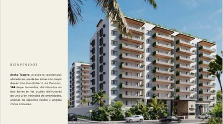 Areka Towers: proyecto residencial ubicado en una de las zonas con mayor desarrollo inmobiliario de Cancún. 144 departamentos, distribuidos en