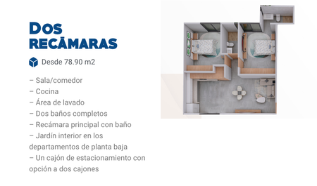 - Un cajón de estacionamiento con opción a 2 cajones.