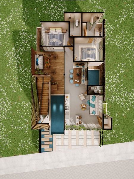Las amenidades de este desarrollo son privadas ya que cada uno cuenta con su propia laberca y espacio de estacionamiento, haciendo de este desarrollo un proyecto ideal para quien busca la privacidad y tranquilidad.