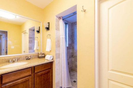 Alberca estilo resort con bar dentro de la piscina y jacuzzi.