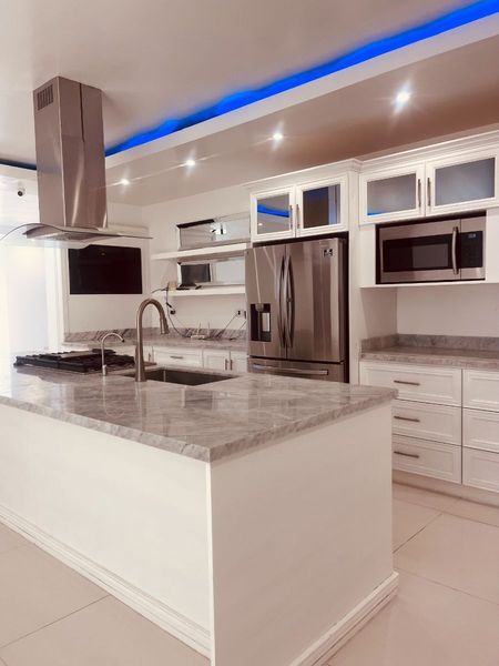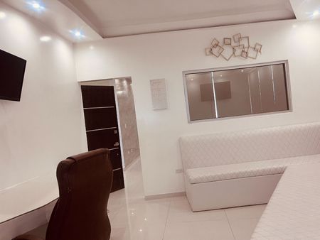 At the main entrance lined with stone slate, it has 6 bedrooms, 5 bathrooms, modern kitchen, living room, dining room, 2 offices, the entire interior on a 1m x 1m ceramic tile floor, garage for 6 cars, hall, laundry room, heated pool and jacuzzi, sports bar with red granite counter, PENTAIR brand drinking water purification system, social area on the terrace and BBQ area.