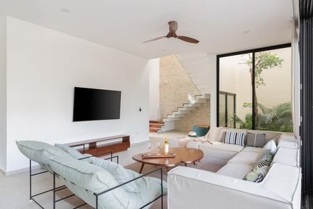 Amplia sala de estar con tv