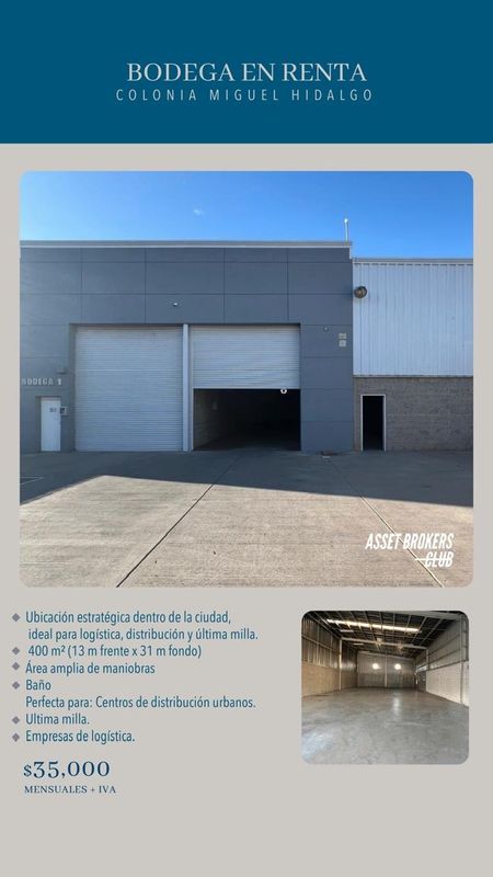 BODEGA EN RENTA COLONIA MIGUEL HIDALGO