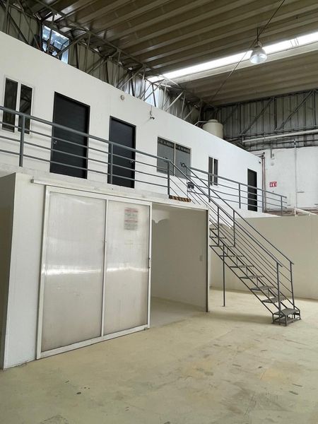 Superficie de terreno 398.38 m2, Área de almacén 273.48 m2, Área de oficinas planta baja 123.99m2, Área de oficinas planta alta 103.35 m2, Área de mezanine 76.65 m2, Área total COnstruida 577.47 m2. Altura libre 5.50 mts, Altura máxima 5.50 mts., Lámparas industriales de bajo consumo, Pisos de concreto armado pulido, Techo de lámina IMSA pintroalum blanca, Tipo de muro sólido con acabado, 1 cisterna con capacidad de 5,000 litros aprox., Baño Completo, Excelente ubicación, a unos minutos del corredor Industrial el Salto.