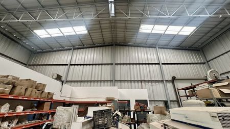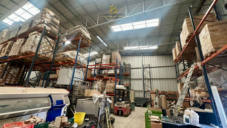 Con área para estacionamiento, rampa para descarga, amplia área para almacén, área para oficinas y 4 medios baños.