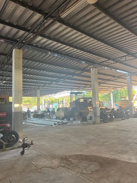 El predio cuenta con 4,900 m² de terreno y aproximadamente 500 m² de construcción, incluyendo oficinas amplias, área de recepción, baños y una zona con cubierta metálica.