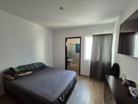 Cuenta con aljibe de 5,000 lts, una superficie de terreno de 105 m2 (7 m de frente por 15 m de fondo) y una construcción de más de 200 m2, la cual es mayor a las casas promedio, pues el dueño completó y cerró la terraza, así mismo, en lugar de patio se fincó por si se quiere hacer una habitación nueva, actualmente ese espacio funge como bar / cantina y se le puso piso a la terraza y a la cochera. Es una casa muy bonita y vistosa, ya que se encuentra en esquina.