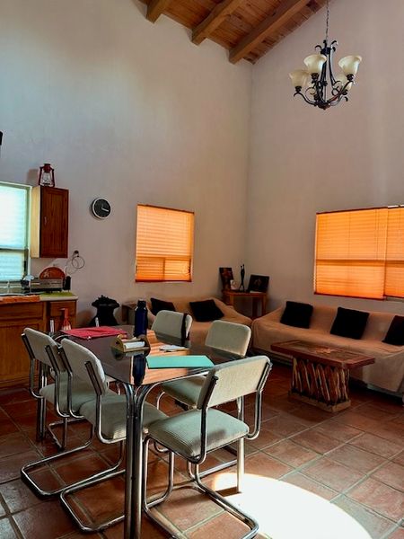 La casa esta construida en un terreno de 3,000 metros, con una vista espectacular al volcán y al nevado de Colima, a áreas verdes, bosque, jagüey. La casa tiene una superficie aproximada de 180 metros, en dos niveles. Cuenta con recamara con baño en planta baja, área de sala, comedor y cocina, medio baño de visitas y patio de servicio con amplia bodega.