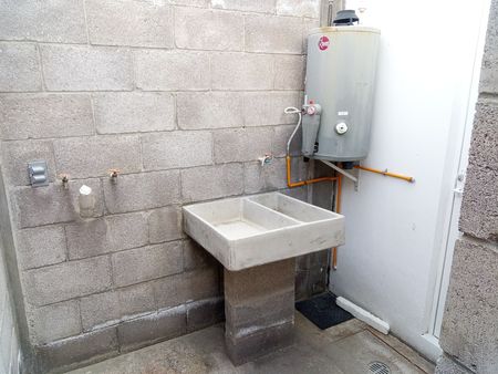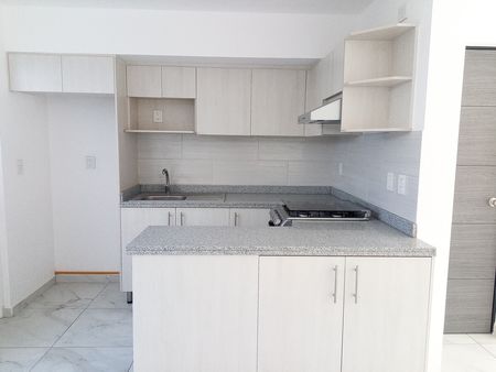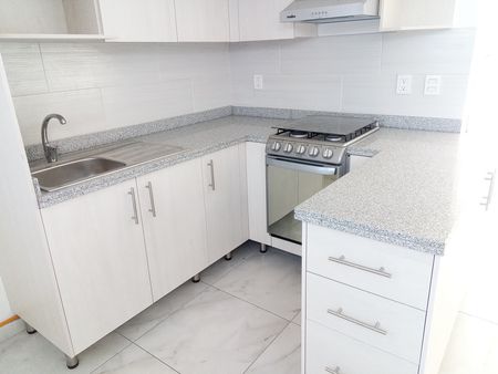 Cuenta con espacio de sala. comedor, cocina integral, medio baño, patio trasero.