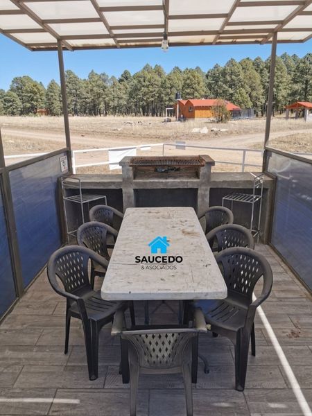 Área común consta de glorieta de acceso en concreto, área de azadores tipo kiosko, área de camping con tomacorrientes y area de fogata, estacionamiento para 8 vehículos.