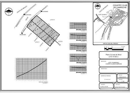 Terreno ubicado en Campeche Country ClubLote 78 de la Manzana 2Polígono Norte: 39.70.Este: 19.72+0.28=20.Sur: 40.42.Oeste (frente de mar) 2.77+14.23+3.14=20.14.