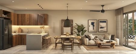 Estos nuevos departamentos de 1, 2 y 3 recámaras y penthouses ofrecen diferentes diseños y opciones para adaptarse a sus necesidades, incluyendo unidades con jardín y alberca privada, y lujosos penthouses con rooftops privados. Cuentan con una cocina completa con barra de desayuno y una luminosa área de estar y comedor que se abre a un balcón privado, perfecto para disfrutar de su café de la mañana y desayuno. Los departamentos en planta baja tienen jardines y albercas privadas, y los lujosos penthouses tienen terrazas en la azotea con albercas de inmersión y vistas panorámicas a la selva. Estos departamentos tienen pisos de cerámica y acabados de alta calidad que son duraderos y fáciles de mantener. Se ofrecen en venta sin amueblar, pero equipados con aire acondicionado.