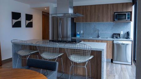 Una torre de departamentos de lujo diseñada con un innovador concepto arquitectónico, en donde se enfocan en los detalles de la vida cotidiana y maximizan el tiempo brindando comodidad en cada uno de los espacios. 2 recámaras, 2 baños, cocina integral, cuarto de lavado. Gimnasio, Salón de juegos, parilla, cafetería.