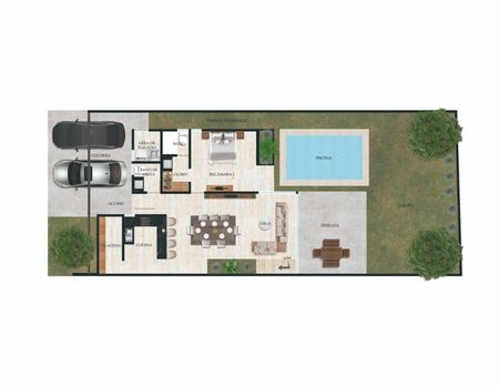 - Sala y comedor con doble altura