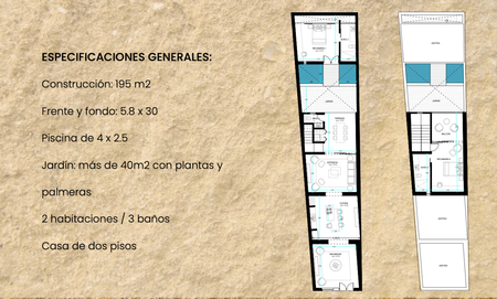 2 habitaciones / 3 baños Casa de dos pisos