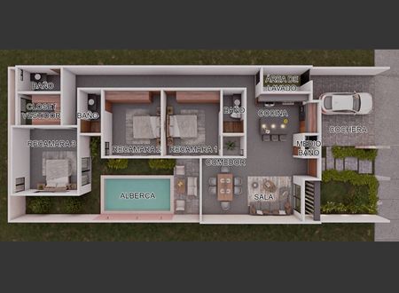 • 2 Recamara secundarias con closet y baño