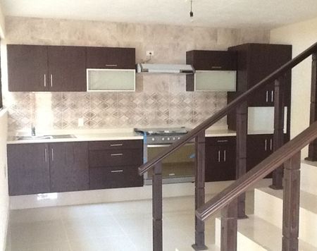 3 recámaras con closet, 3 baños, doble estancia, cocina integral, alacena, cuarto de servicio, cuarto de lavado, alberca. Área libre privada 70.41.