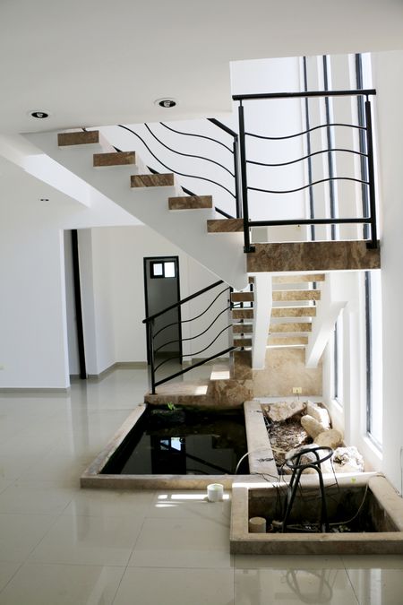 LAS ESCALERAS, TAMBIÉN ES PARTE DE LA BELLEZA DE ESTA CASA, AL PIE TIENE UN ACUARIO Y VISTA HACIA LA CALLE.