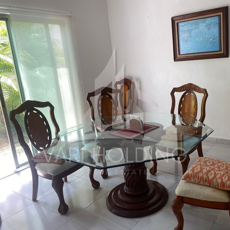 El desarrollo ofrece un conjunto de amenidades diseñadas para toda la familia, entre ellas un área social con pérgola, alberca con chapoteadero, asoleaderos, regaderas y una terraza bar que complementa los espacios de convivencia. Asimismo, se puede disfrutar de un extenso jardín, cancha de fútbol, juegos infantiles, parque para mascotas y estacionamiento para visitas. En cuanto a seguridad, la comunidad cuenta con barda perimetral, doble filtro de acceso y vigilancia las 24 horas, lo que garantiza tranquilidad y privacidad. Esta propiedad representa una excelente oportunidad para quienes buscan un estilo de vida cómodo, seguro y rodeado de espacios recreativos dentro de una de las zonas residenciales más atractivas de Cancún.
