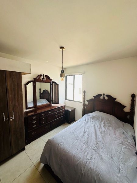 Recamara secundarias con cama matrimonial y tocador comparte baño.