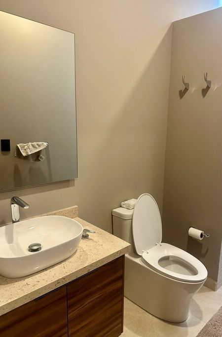 Baños modernos con acabados en mármol, espejos de diseño y accesorios premium.
