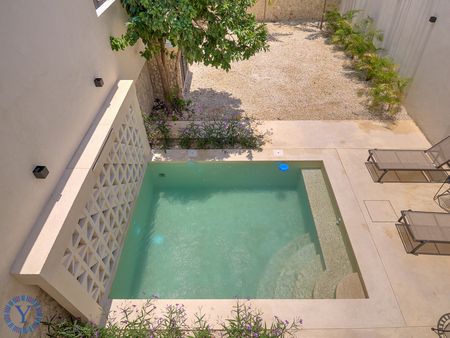 Una escalera adornada con pisos de pasta azul conduce a los 3 dormitorios, 1 baño completo y una sala de TV en la segunda planta. También hay zona dos terrazas adicionales. La propiedad tiene planes para un cuarto y quinto dormitorio.