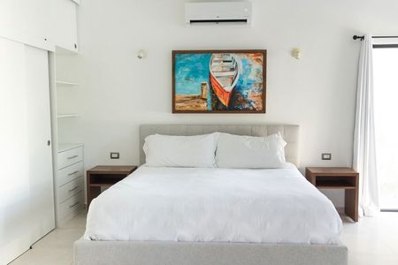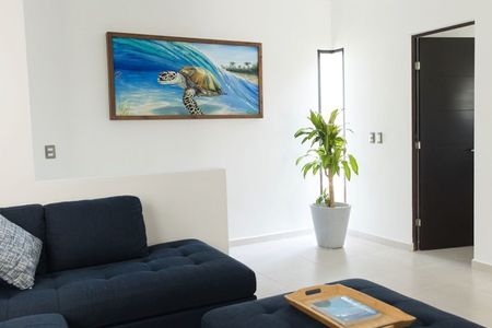 Esta actualizada villa de 3 habitaciones y 2.5 baños tiene todo lo que pueda desear en una casa de vacaciones o una residencia permanente. Cuenta con una amplia sala de estar, un comedor funcional y una cocina totalmente equipada con un pasillo con bancos de bar, electrodomésticos de acero inoxidable de alta calidad y un sistema de filtración de agua por ósmosis inversa conectado al refrigerador, garantizando acceso a agua limpia y purificada. La habitación principal tiene un balcón y un lujoso baño en suite con bañera y tocador doble. Suficiente espacio de almacenamiento en la cocina y armarios en las habitaciones hacen que esta casa sea cómoda para la vida diaria y fácil para sus huéspedes de vacaciones. Tiene un patio trasero, una escalera al techo y estacionamiento. La propiedad está completamente amurallada, ofreciendo una maravillosa sensación de seguridad y privacidad para usted y sus huéspedes. También hay una gran alberca comunitaria y una palapa de entretenimiento cercanas.