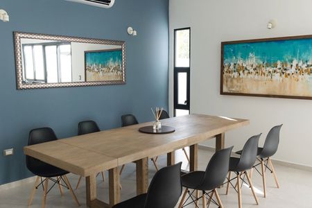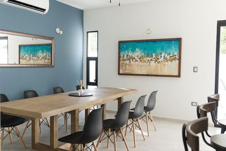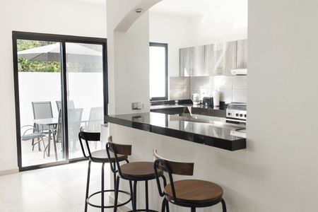 Esta villa de 2 pisos llena de luz solar se encuentra en un tranquilo callejón sin salida en la comunidad cerrada de El Encuentro en Playa del Carmen. Ubicada justo al norte del centro de la ciudad, este desarrollo residencial seguro ofrece exclusividad y privacidad, pero también fácil acceso a playas fantásticas. Esta zona está a un corto trayecto en automóvil de la mundialmente famosa Quinta Avenida y cerca de todos los servicios de la ciudad. Está idealmente situada para aprovechar todo lo que la emocionante ciudad de Playa del Carmen tiene para ofrecer, mientras aún se siente "alejado de todo".
