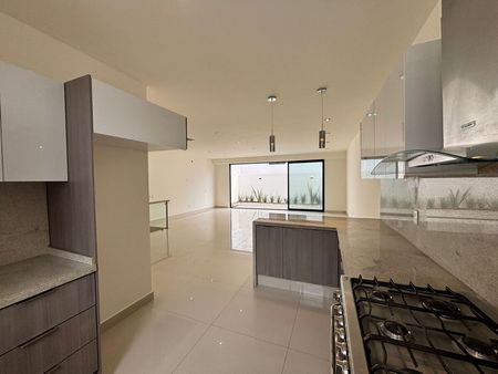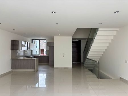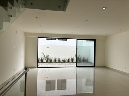Planta Baja- Cochera, 1/2 baño, sala-comedor con preparación para A.C, cocina equipada con barra, y jardín.