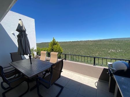 En el primer piso se encuentra la sala, el comedor,medio baño, área de televisión, cocina recientemente remodelada, terraza con asador, recamara principal con walk-in closet y baño completo y vista a la reserva natural.