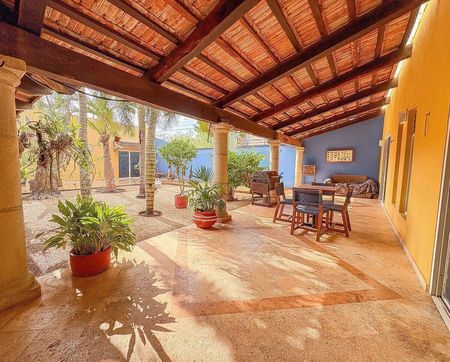 Su diseño de una sola planta ofrece techos altos, espacios abiertos y una distribución cómoda y funcional. Cuenta con terreno excedente para tener un jardín enorme o expandir la construcción.