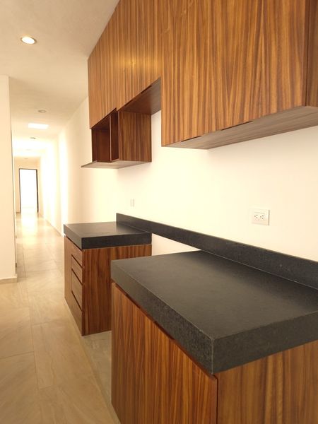 Cocina abierta con isla desayunadora, integrada al área social