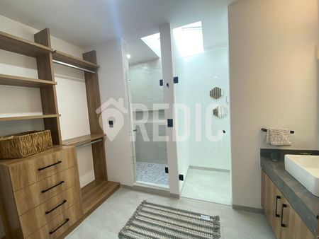 Recámara principal con vestidor y baño completo, 2 recámaras secundarias comparten baño
