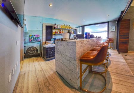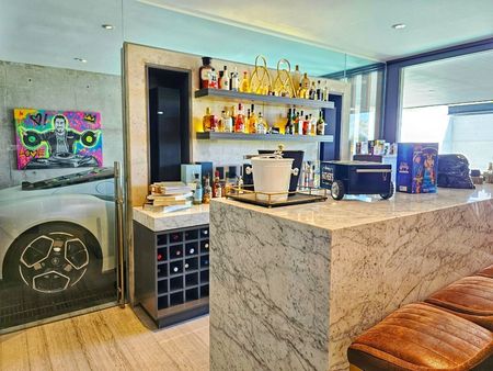 Uno de los aspectos más destacados de esta propiedad es el espectacular bar expandible, desde el cual se puede disfrutar de vistas panorámicas mientras se deleita con su bebida favorita. Además, cuenta con una característica única: desde el bar, se puede admirar un lujoso automóvil, agregando un toque adicional de exclusividad y glamour.