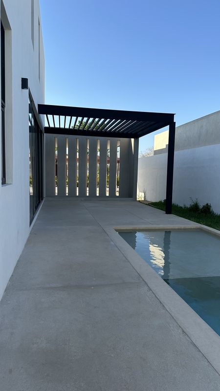 - Terraza con pérgola de acero