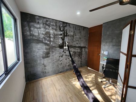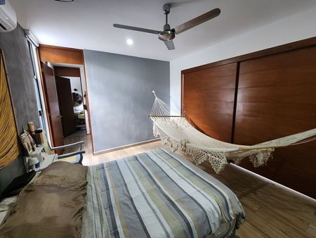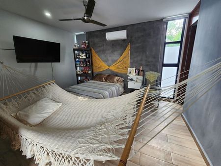*Recámara#3 Igual con amplia puerta corrediza que da vista a la piscina, cuenta con vestidor, baño, propio completo, aire acondicionado y ventilador de techo.
