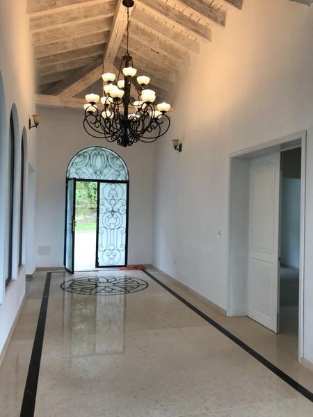 Desde el primer vistazo, la propiedad impresiona con su fachada señorial enmarcada por vegetación madura. En el interior, cada espacio ha sido cuidadosamente diseñado con materiales de la más alta gama, destacando el mármol de Carrara, la ebanistería fina, duela de madera natural y vitrales artesanales que bañan los ambientes con una cálida luz multicolor.