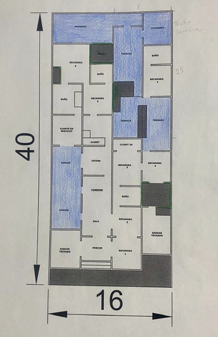 Terreno: 640 m² (40 m de largo x 16 m de frente)