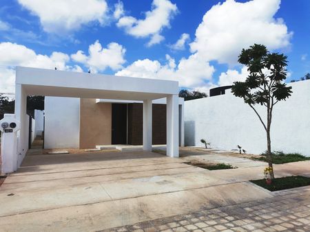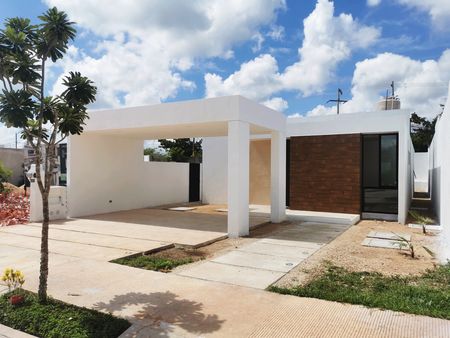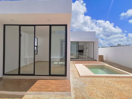 Ubicada en la privada residencial FIORA en Cholul, se encuentra ésta casa, lista para estrenar, de una planta, con piscina.
