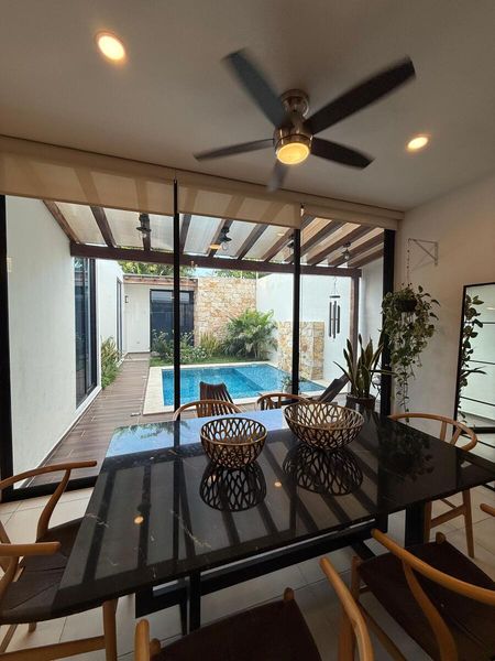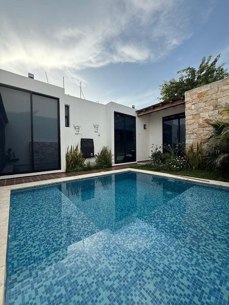 Hermosa Residencia en Venta de UNA SOLA PLANTA con 16 PANELES SOLARES y barda electrificada en Temozón Norte, a menos de 200 metros de la carretera Mérida Progreso.