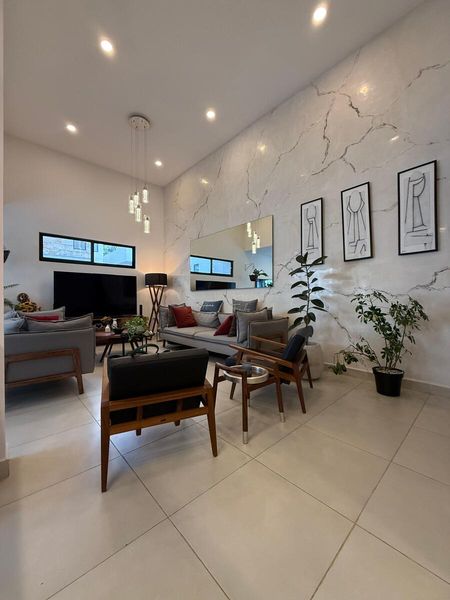 -Sala a Doble Altura con hermoso diseño de Palladium en la Pared .